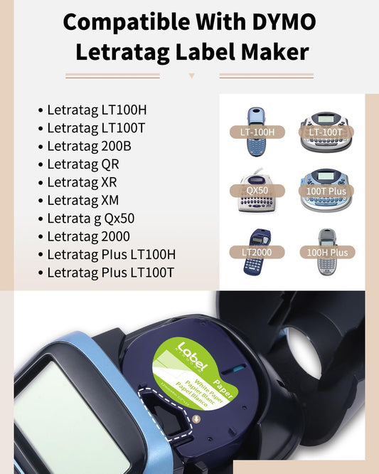 Label KINGDOM Compatible Label Tape Replacement for DYMO LetraTag Refills Paper/Plastic Label Tape 91330 91331 91332 91333 91334 91335 for Dymo Letra Tag Puls LT100H LT100T, 1/2'' W x 13' L, 6-Pack