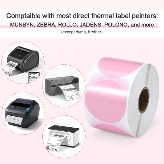 2" Pink Circle Thermal Sticker Label- 750 Sheets for Multi-Purpose Label, Self-Adhesive Round Label for Direct Thermal Printer, 1 Roll