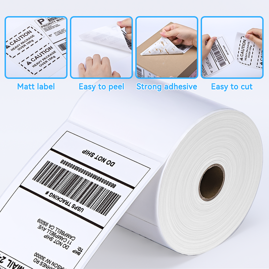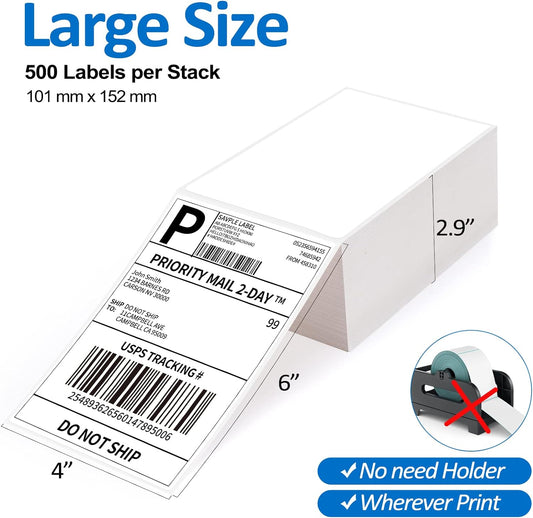 Label KINGDOM 4 x 6 Inch Direct Thermal Shipping Label Roll, 500 Sheets for Rollo Zebra Munbyn or Other Thermal Printer Used on FedEx, USPS, UPS, DHL for Address Label, 1 Roll
