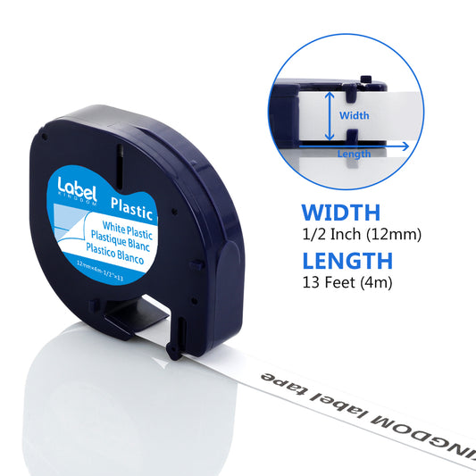 Label KINGDOM 20-Pack Label Compatible with DYMO 91331 LetraTag Label Tapes White Plastic Refills 12mm x 4m (1/2" x 13') for Dymo Letra Tag Label Maker LT100H LT100T QX50 LT-200B, Black on White