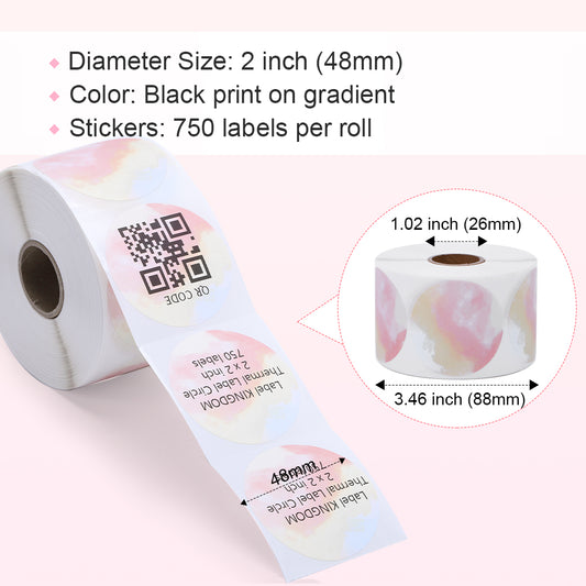 Label KINGDOM 2 Inch Round Direct Thermal Label- Black on Gradient Color, 750 Circle Stickers for Most Thermal Printer for Gift/DIY/Logo Design, 1 Roll